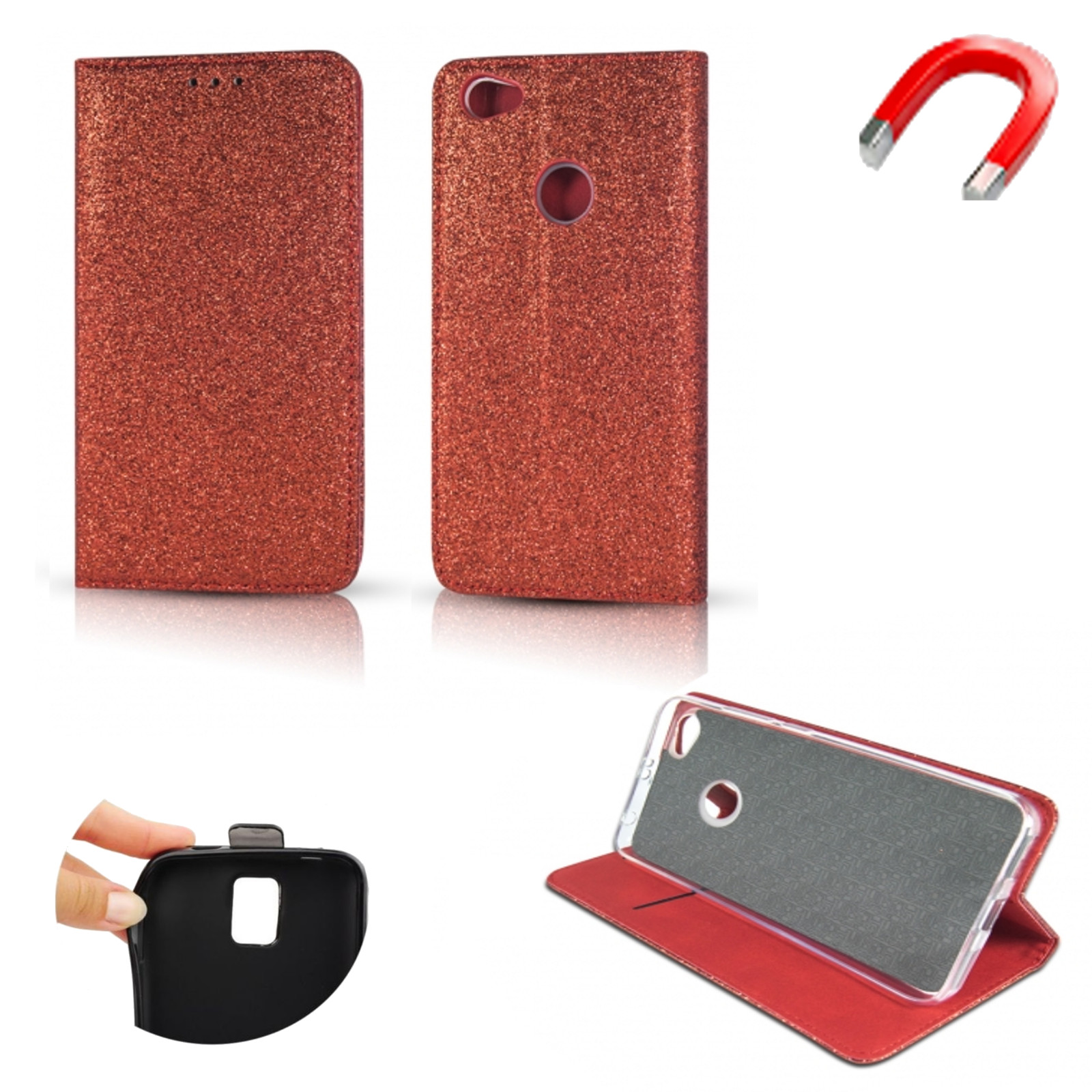 Book Case Brokat Glitzer Bling Etui Schutzhülle Flip Tasche Für Nokia 5 2018