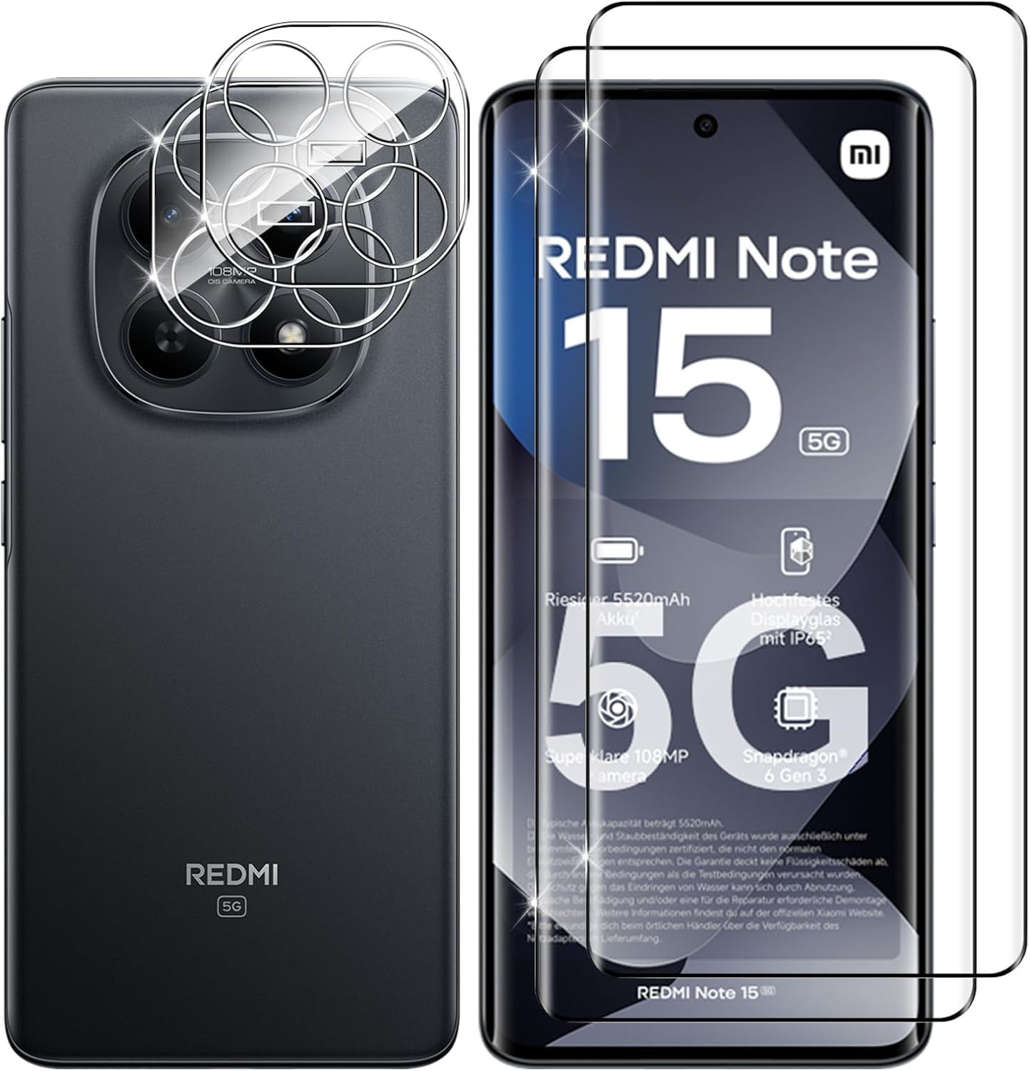 2X 3D Schutzglas ( Display + Kamera ) für Xiaomi Redmi Note 15 5G Panzerfolie 9H