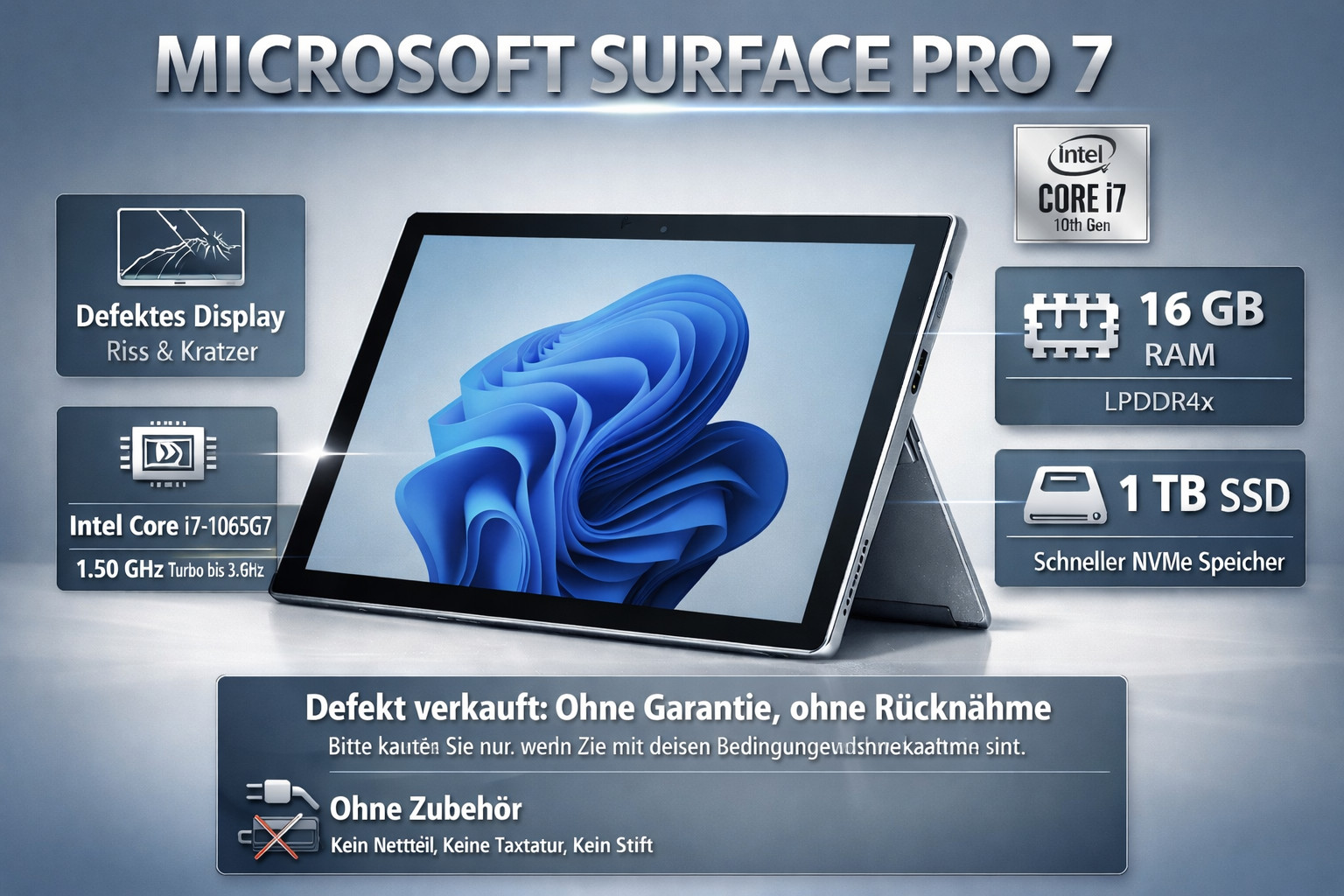 💻 Microsoft Surface Pro 7 | 1866 | i7 10th | 16/ 1TB Tablet PC ❌Display Riss❌