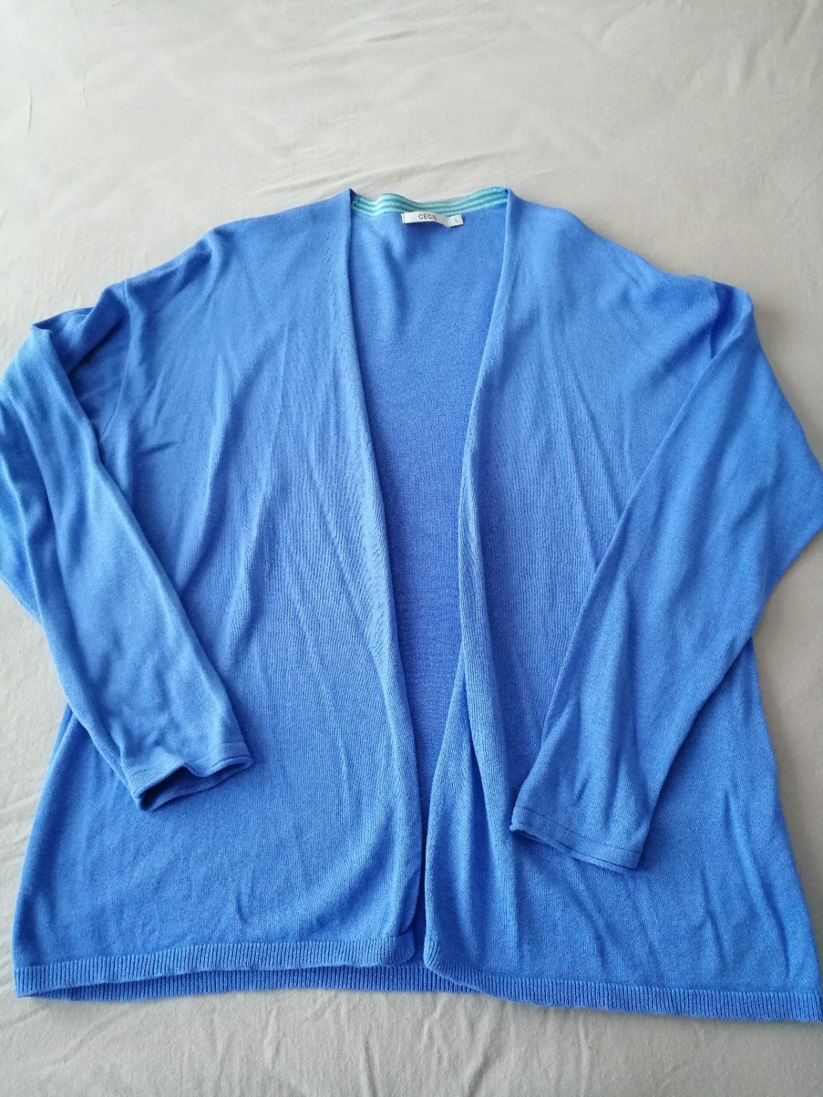 Ich muss ein bisschen Platz schaffen und trenne mich von ein paar Teilen. Die Strickjacke ist wenig getragen und in einem sehr gutem Zustand. Farbe hellblau , Langarm, gerader Schnitt. Weite ca. 54 cm, Länge ca. 67 cm Verkauf von Privat, ohne Garantie und Rückgabe. Wir sind ein tierfreier Nichtraucherhaushalt. Das Porto ist im Kaufpreis enthalten. Es fallen keine zusätzlichen Kosten an.