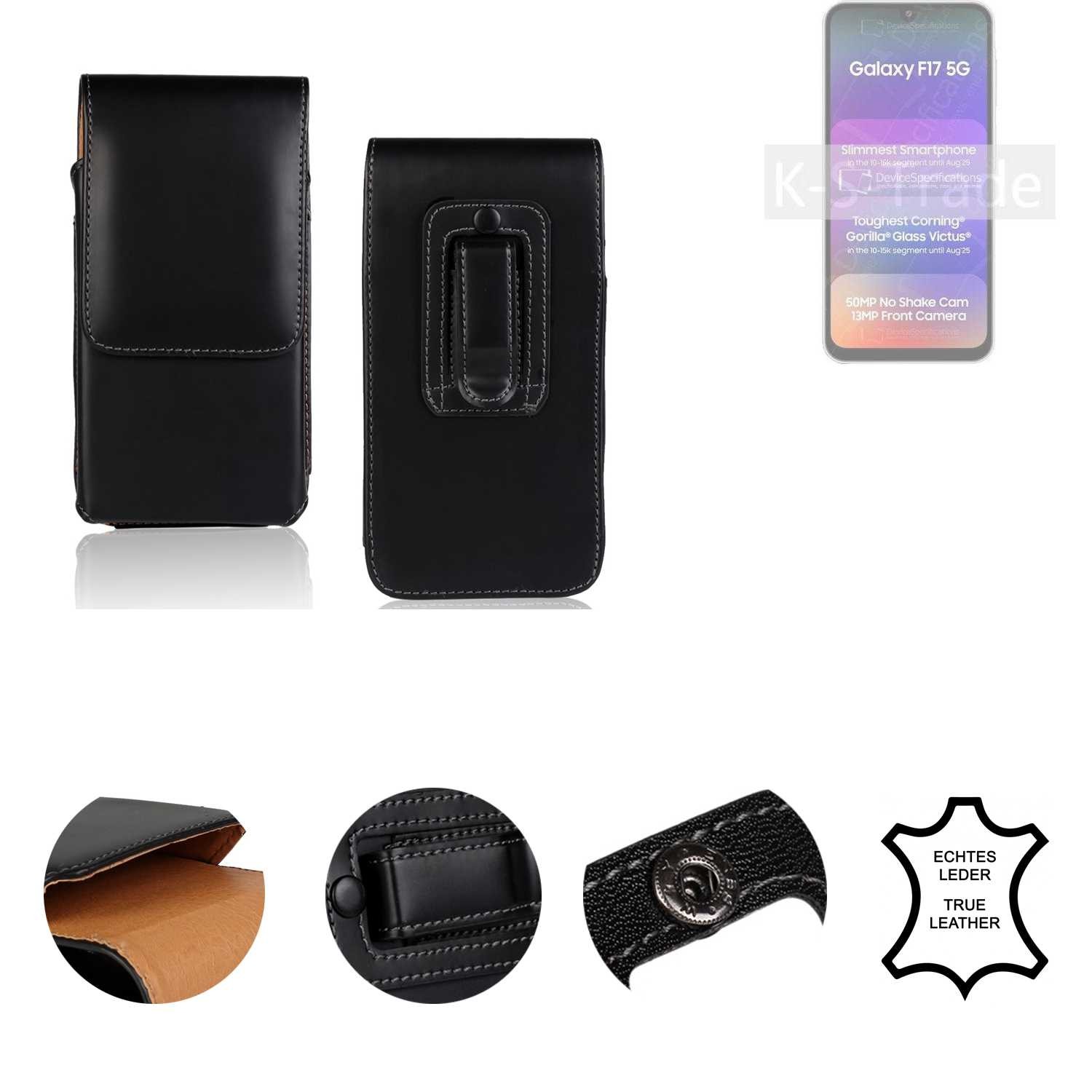 Echtleder Gürteltasche Schutzhülle für Samsung Galaxy F17 5G schwarz Case Sli
