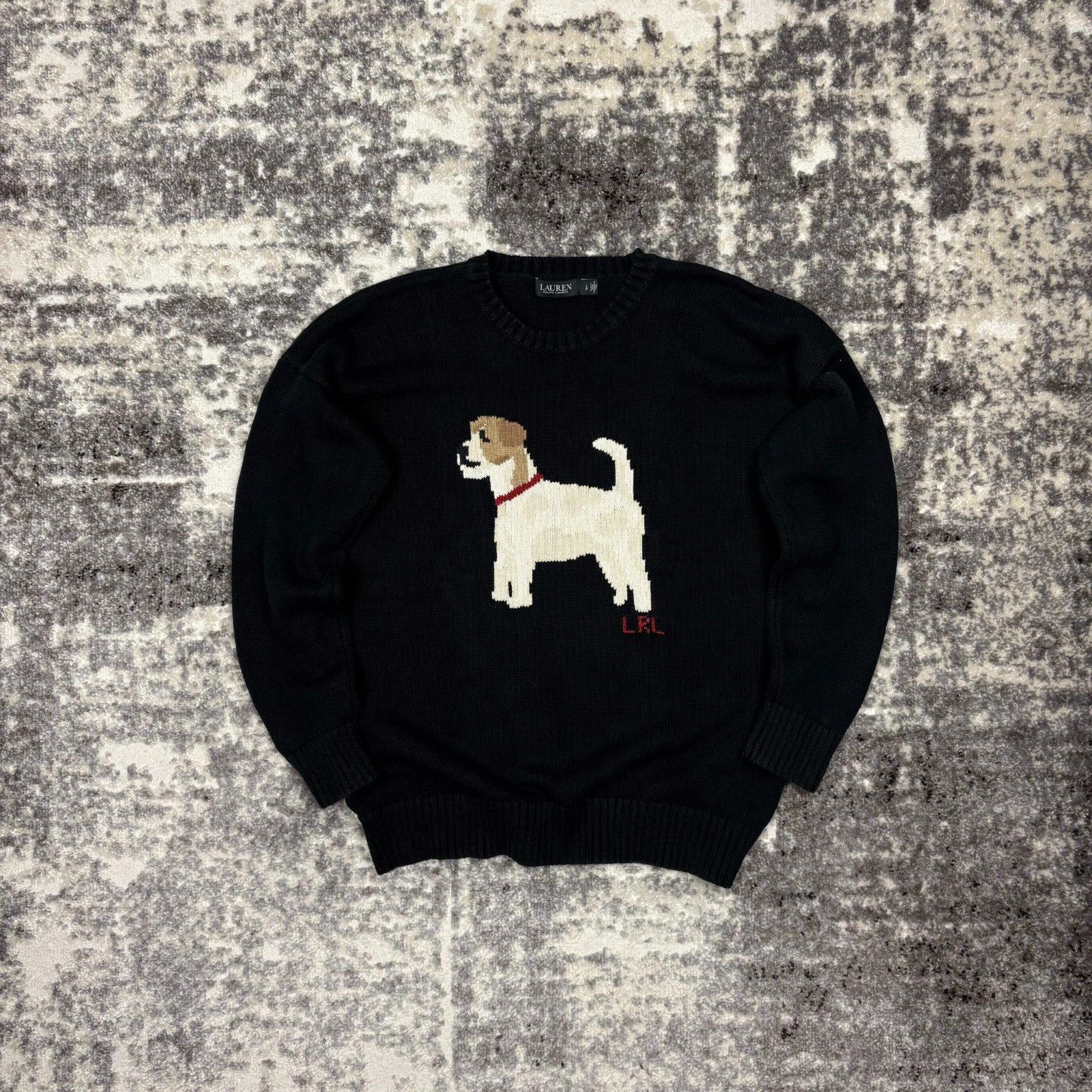 Lauren Ralph Lauren Damen Strickpullover Intarsia Knit Hund Schwarz - Größe L -