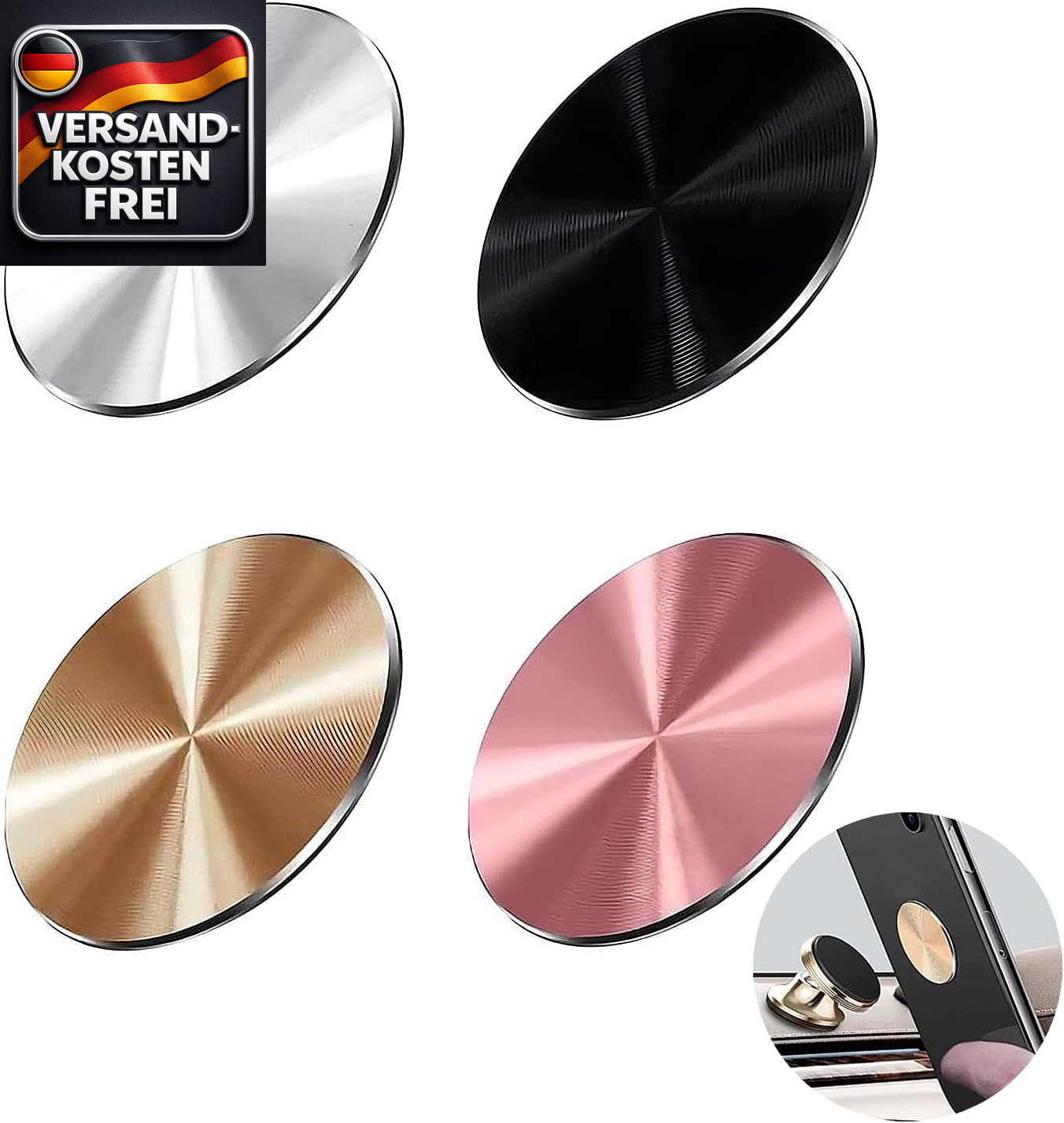 Metallplatten für magnetische Autohalterung selbstklebend 4er Set in Gold Silber