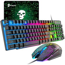 Tastatur Maus Set Kabelgebunden LED RGB Gaming Büro PC schwarz