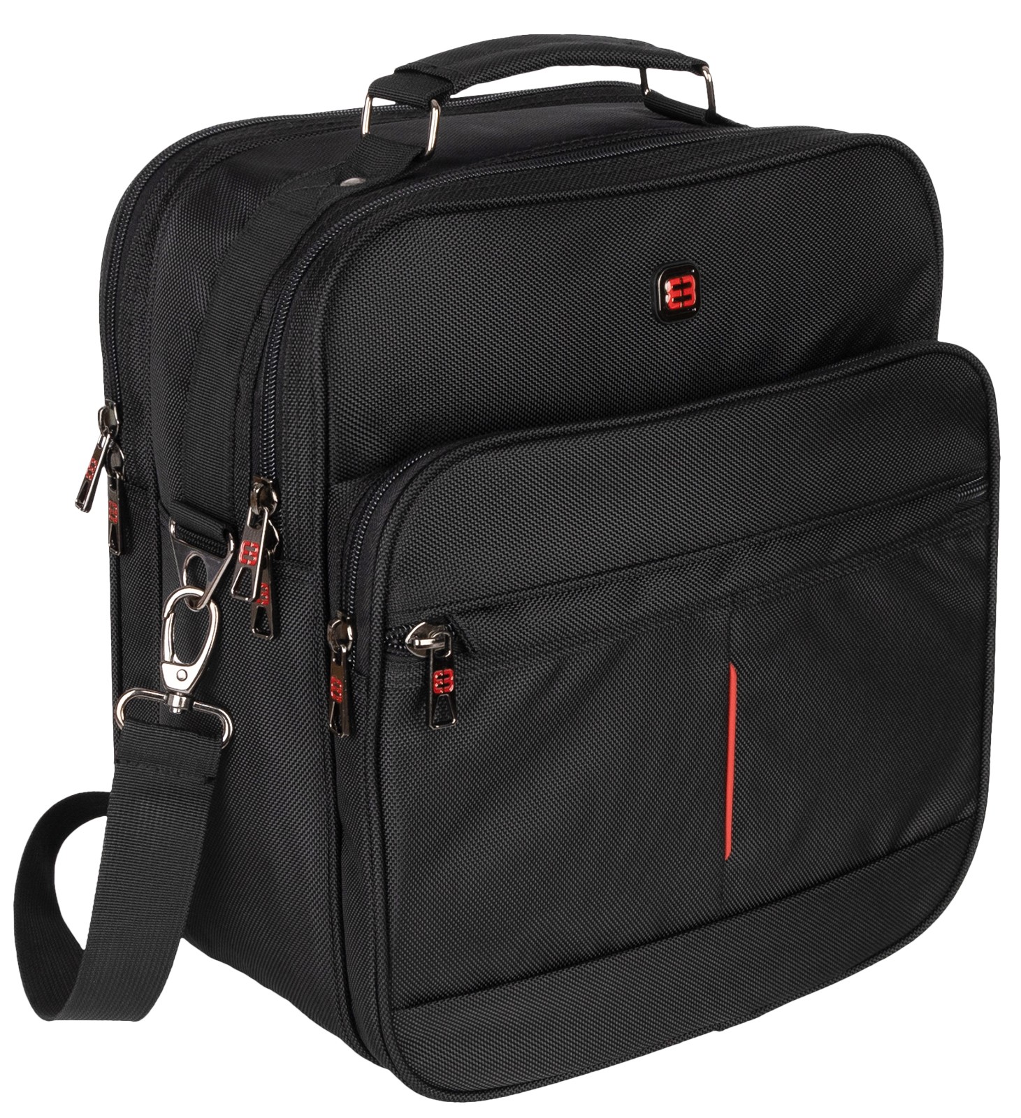 Enrico Benetti Umhängertasche. Optimal für Freizeit, Schule, Arbeit und Reisen. Ein großes Hauptfach mit doppeltem Reißverschluss passend für DIN A 4 Mappe, mit extra verstärktem Boden. Eine Fronttasche mit Reißverschluss, im Inneren ein Organizier (bestehend aus Reißverschlussfach, Steckfach, Netzfach und Stiftehalterungen).