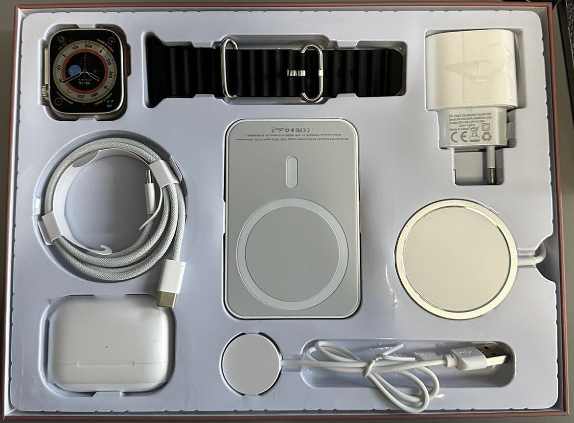 Das Zubehör Set für iPhone 11-15 beinhaltet alles, was du brauchst, um dein Handy optimal zu nutzen. Mit dem Ladegerät und der Powerbank hast du immer genug Energie, um unterwegs erreichbar zu bleiben. Die Kopfhörer sorgen für den perfekten Soundgenuss, während die Smartwatch dir hilft, deine Gesundheit und Fitness im Blick zu behalten. Das Set ist speziell für das iPhone 15 konzipiert und bietet mit Magsafe eine besonders sichere Befestigung. Es ist kompatibel mit Modellen ab dem iPhone 11 und eignet sich ideal für den täglichen Gebrauch. Schütze dein Handy mit der passenden Tasche und genieße das volle Potenzial deines iPhones mit diesem praktischen Zubehör Set.