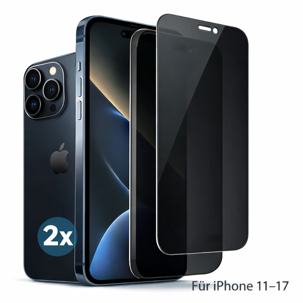 2x Panzerfolie Blickschutz für iPhone 17 16 15 14 13 12 Pro Max Sichtschutz Glas