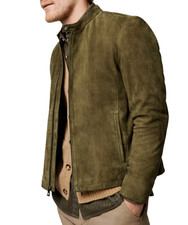 New Style Herren Grün Jacke Outfit Echt Lammleder Echtleder Bikerjacke