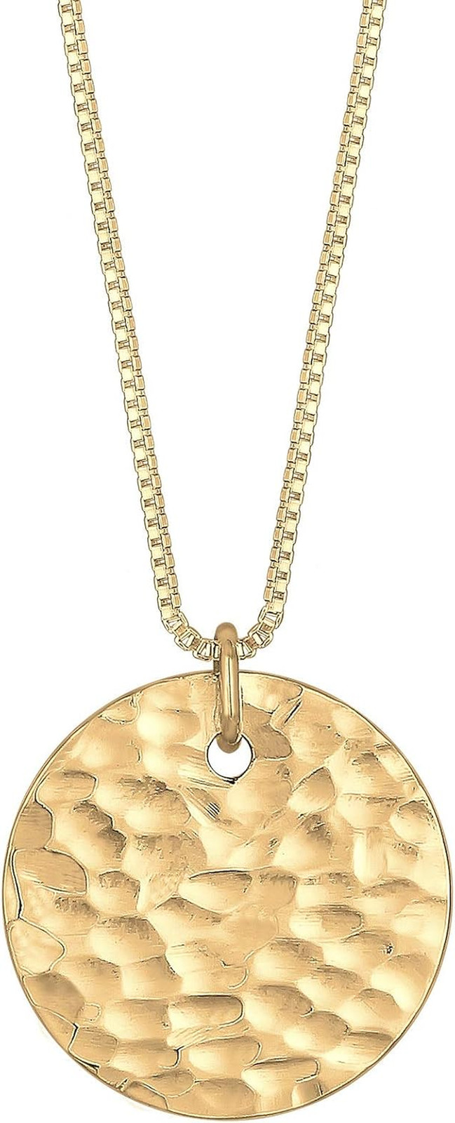 Elli Halskette Damen Plättchen Kreis Gehämmert in 925 Sterling Silber Vergoldet