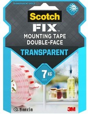 Scotch Double Sided Tape, Transparent Mounting 19mm x Standard, Clear