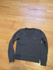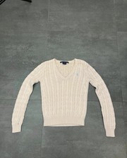Ralph Lauren Sport Pullover Zopfmuster Damen XL Rosa Baumwolle V-Ausschnitt Sweater