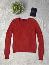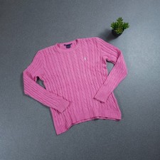 This vibrant Ralph Lauren Sport cable knit jumper is a stunning addition to any wardrobe. In a striking pink with a classic V-neck design, this XL jumper is not only stylish but also crafted from 100% cotton for ultimate comfort.