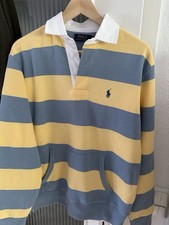 Polo Ralph Lauren Herren Rugby Shirt Gr. M Blau Lila Gestreift Langarm Baumwolle Kragen verdeckte Knopfleiste. Der genaue Zustand ist auf den Fotos gut zu erkennen. ♻Wichtig: Da es sich um gebrauchte Kleidung handelt, können trotz sorgfältiger Prüfung leichte Mängel oder Gebrauchsspuren vorhanden sein.