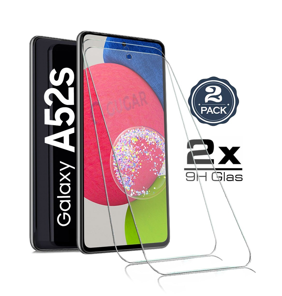 (Für Samsung Galaxy A52 4G/5G - A52s 5G Display Schutzglas. Samsung Galaxy A52 4G/5G -A52s 5G entwickelte, hochmoderne Schutzglas schützt ihr Display bei Stürzen. Wichtiger Hinweis ) : Die Panzerfolie ist aufgrund der Wölbung des Displays etwas kleiner geschnitten.