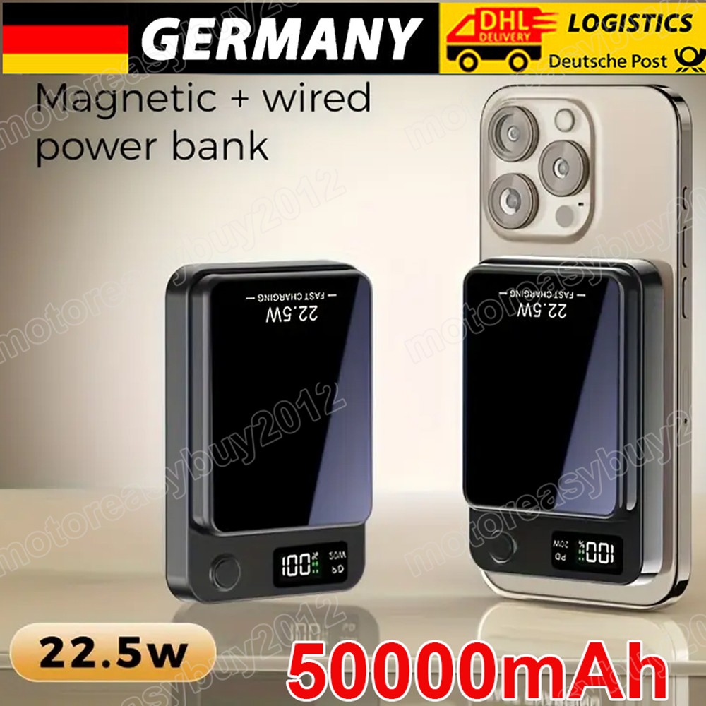 Beschreibung: Neues Update Wireless Quick Charging: Wireless Magnetic Powerbank ist kompatibel mit iPhone 12/13/14/15/16 Serie. Kabellose Schnellladung bis zu 22.5W. Es unterstützt auch USB-A 22.5W/USB-C 20W kabelgebundene Ausgabe. Sowohl kabelgebundenes als auch kabelloses Laden können gleichzeitig durchgeführt werden. Dank der ausgezeichneten magnetischen Ladeeffizienz bietet es Ihnen ein komfortables Ladeerlebnis. Hinweis: Das kabellose Aufladen funktioniert nur, wenn kein Gehäuse oder ein magsicheres Gehäuse vorhanden ist. .
