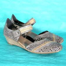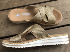 Rieker Damen Slipper Pantolette Sandale Sandalette Gr 38 Klettv.hellblau Akzente