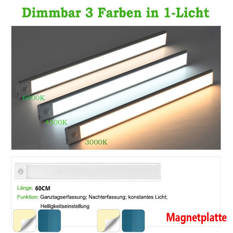 LED Unterbauleuchte 3in1 Dimmbar Mit Bewegungsmelder USB AKKU Küche Schranklampe