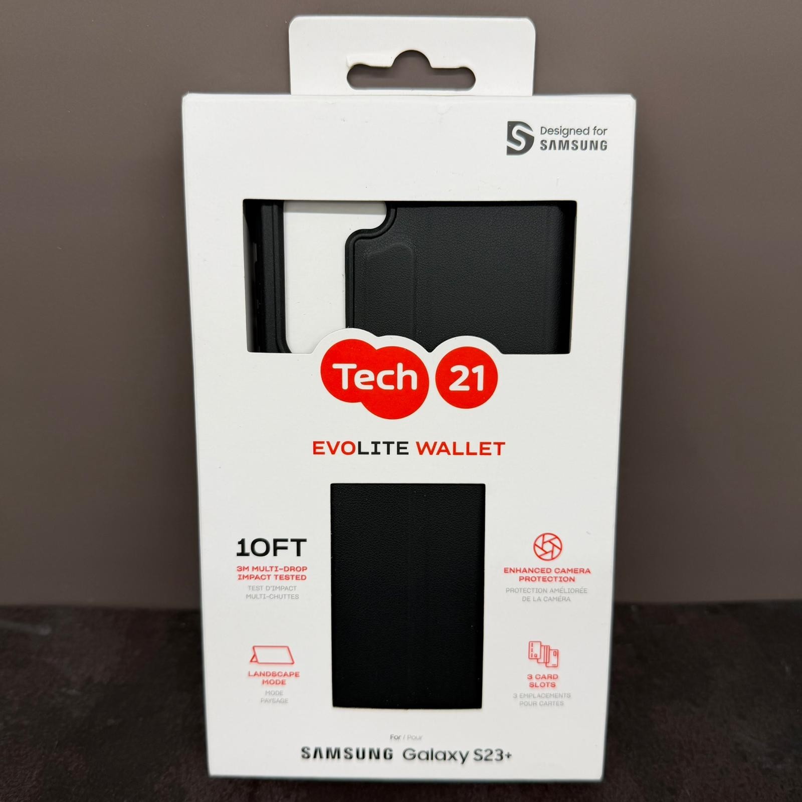 The Original Tech21 EVOLITE WALLET case cover is designed specifically for the Samsung Galaxy S23 Plus, offering a sleek black faux leather construction with a luxury design and logo finish. Featuring multiple card slots, enhanced camera protection, and a shock-absorbent interior, this wallet case provides practicality and security for your device. With a 10ft multi-drop impact tested design and UV scratch resistance, the Tech21 EVOLITE WALLET ensures your phone stays protected in style. Ideal for those who value both fashion and functionality in their mobile phone accessories.