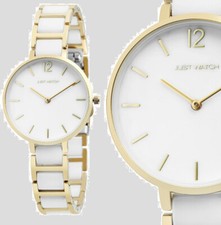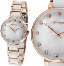 Damen Frauen Uhr edel Gold Silber Weiß Edelstahl Keramik Perlmutt Bling PIERRINI