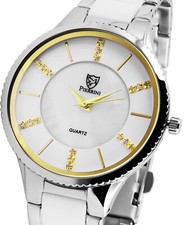 Damen Frauen edel Silber Gold Schwarz bling Lederarmband Armbanduhr JW10179 NEU