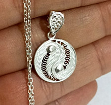 Anhänger: Yin Yang Fische Ø 26mm. - Kette: Länge 42 + 4 + 4 cm. - Verschluss: Karabinerverschluss.
