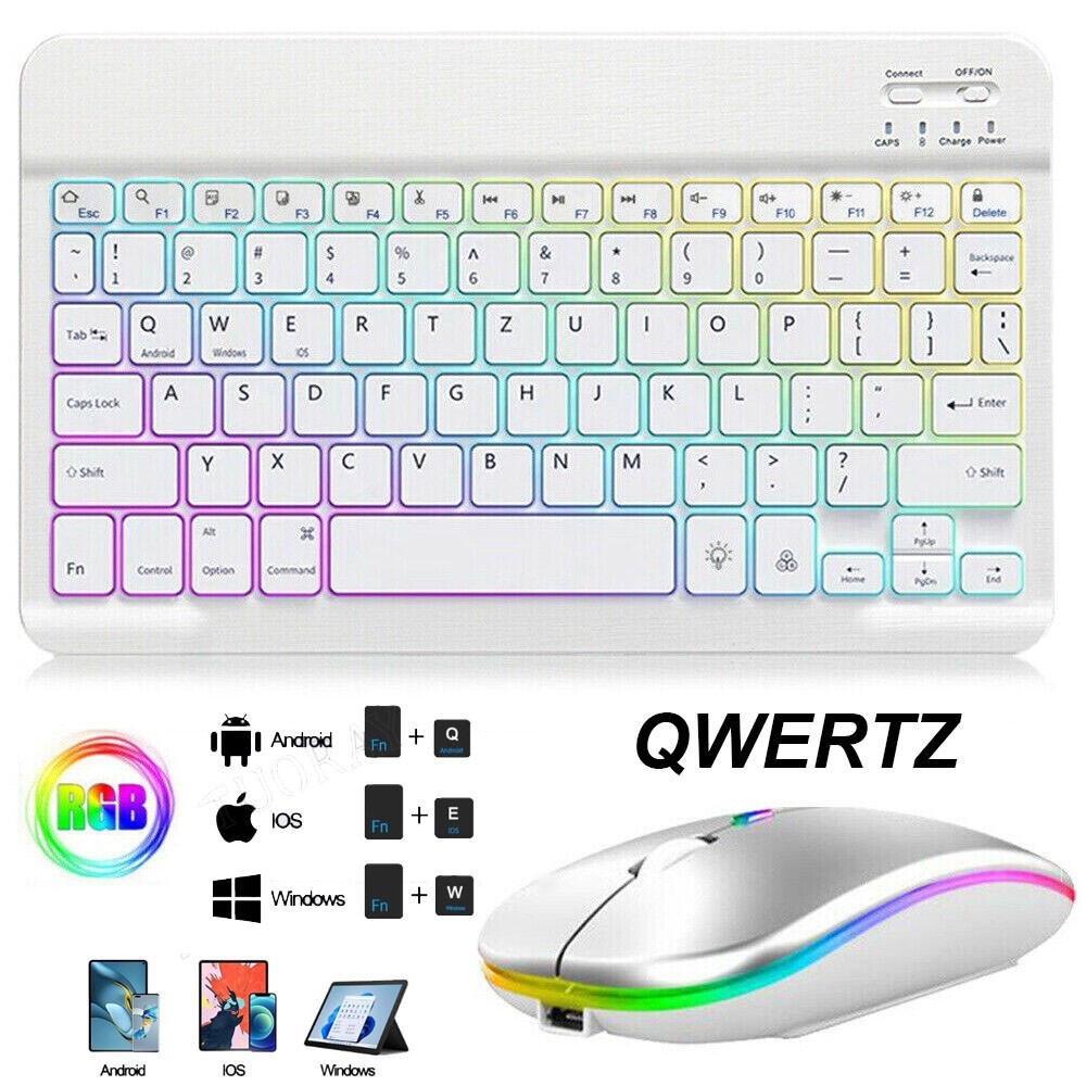QWERTZ Bluetooth Funk Maus Tastatur mit Beleuchtete für Android IOS Windows iPad