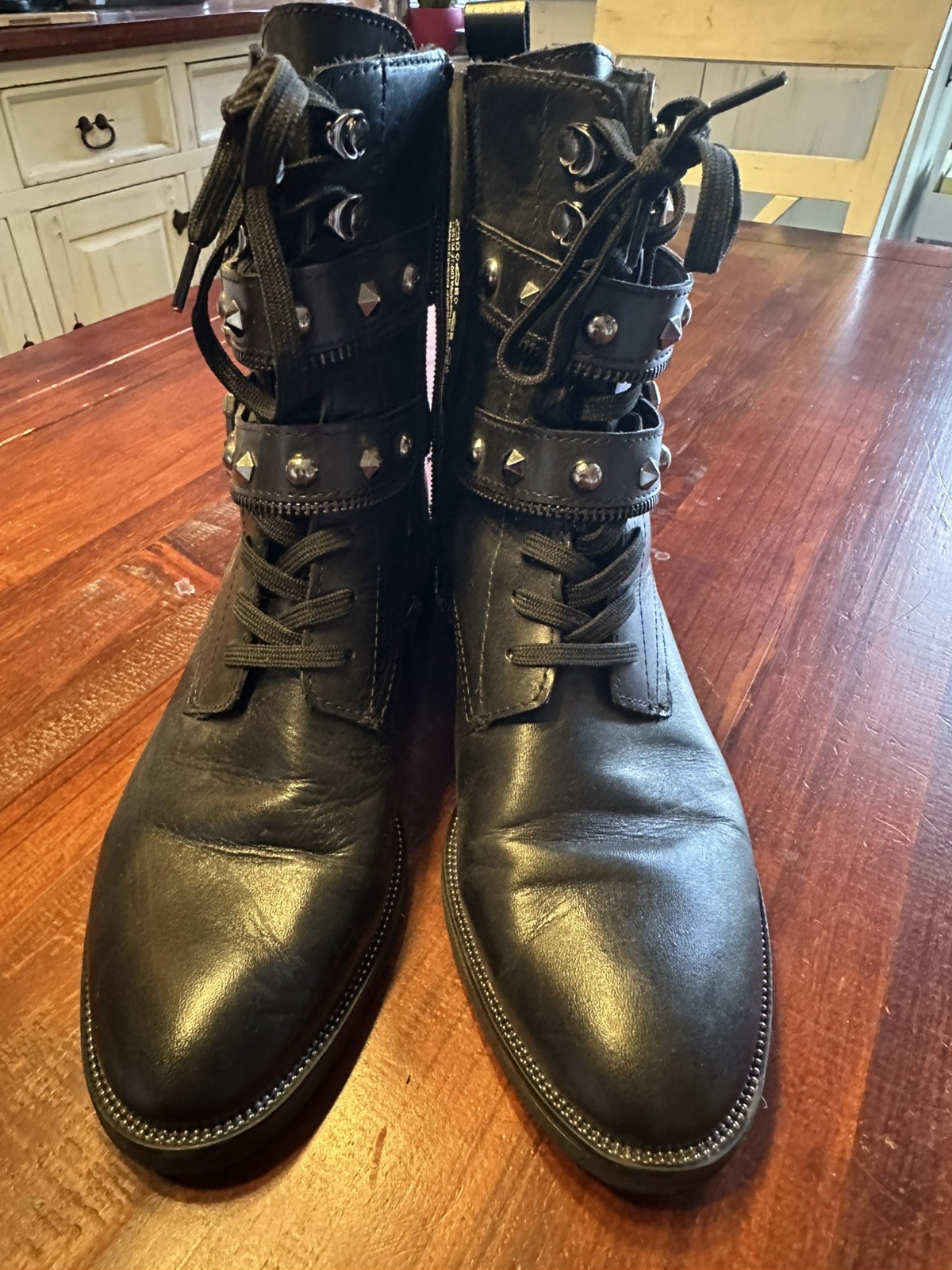 Schnürstiefelette Schnürboots von Tamaris mit Nieten Gr. 40, schwarz * Cooler Schnürboots mit verstellbarer Schnalle und Innenreißverschluss * Obermaterial aus einem Materialmix aus feinem Leder und Lederimitat * Innenfutter aus wärmendem Textil, mit Synthetik kombiniert * Komfortable und herausnehmbare Innensohle aus wärmendem Textil * Profilierte Laufsohle aus Synthetik mit 2,5 cm Blockabsatz Zustand siehe Fotos