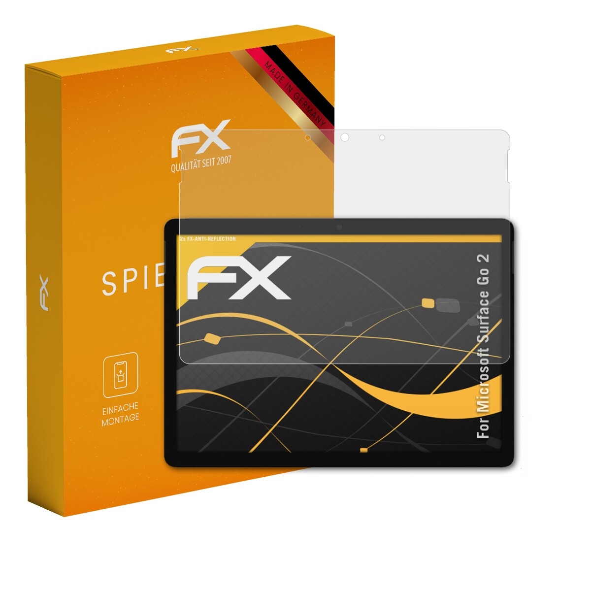 Entspiegelnd und stoßdämpfend: atFoliX 2 x FX-Antireflex Schutzfolie für Microsoft Surface Go 2 - Made in Germany! Verkauf und Versand durch @FoliX - Original und direkt vom Hersteller! Montage Zubehör inklusive: Reinigungstuch, Montagewerkzeug (Rakel), Link zur mehrsprachigen, bebilderten Montageanleitung (inkl. Montagevideo).