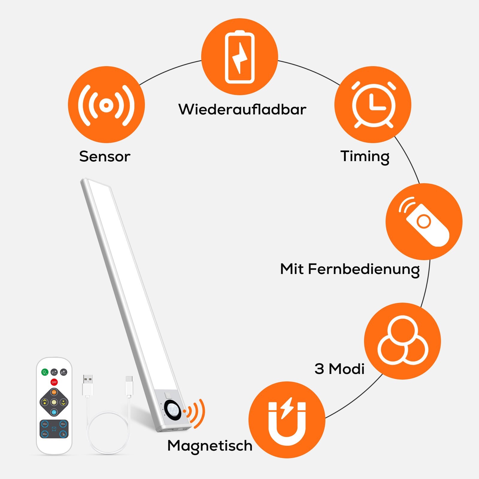 LED Unterbauleuchte 3in1 Dimmbar Mit Bewegungsmelder Magnet Lichtleiste USB AKKU