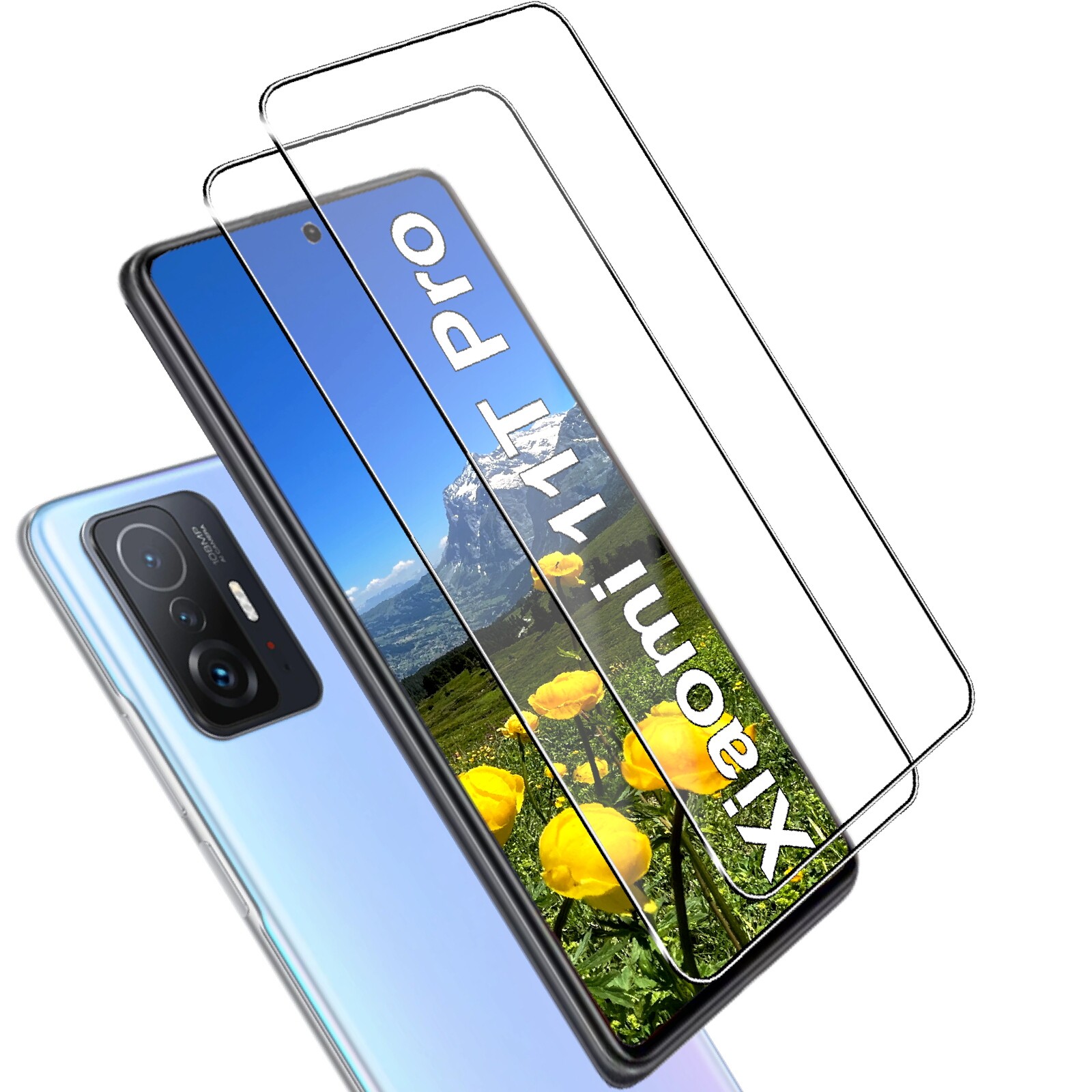 2x Hartglas Panzerfolie für Xiaomi 11T Pro. Idealer Display Schutz vor Verschmutzung, Kratzern und Beschädigungen im Doppelpack von EGEDI® Hochtransparenter 9H Echtglas Schutz für Ihr Handy Display ✓Klebt vollflächig ✓Einfach blasenfrei zu installieren ✓100% Case-friendly Hüllenfreundlich für die Benutzung mit Hüllen - deckt das Schutzglas ca. 97% der Vorderseite ab, lässt jedoch an den Seiten 2mm Raum, um einen Kontakt mit der Hülle und unschöne Luftblasen unter Rändern zu vermeiden. Achtung: Rundungen an den Seiten Ihres Smartphones werden nicht abgedeckt. ✓2.5D abgerundete Kanten für angenehme Haptik ✓Ultra dünn mit einer Glasstärke von 0.33mm ✓Fingerabdrucksensoren funktionieren bei neuem Anlernen auch mit Glas Displayschutz!.