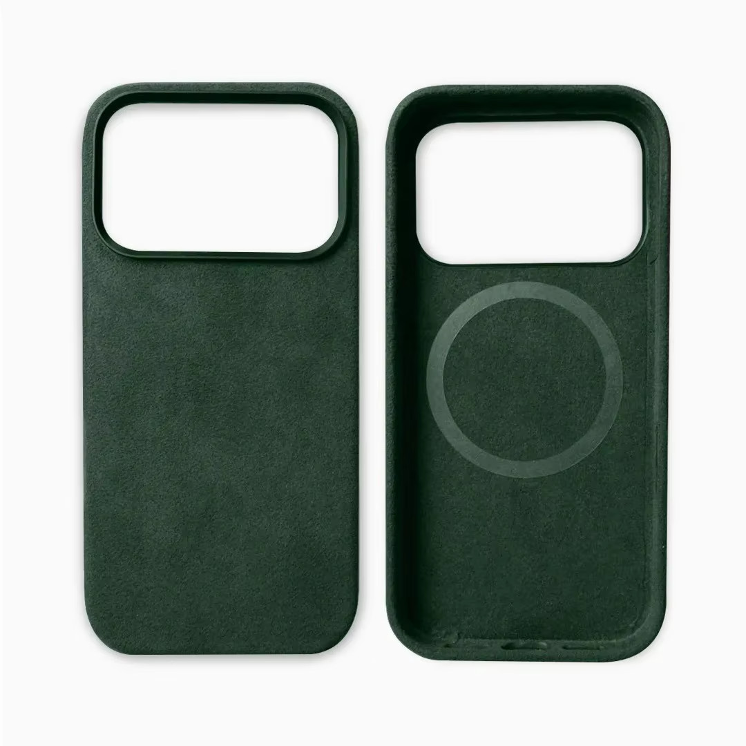 Alcantara Case für Original iPhone 17 Pro MagSafe Bumper Hülle Grün Green Schutz