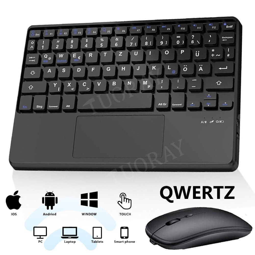 QWERTZ Touchpad Bluetooth Tastatur Maus für iPad iOS Android PC Windows Tablet