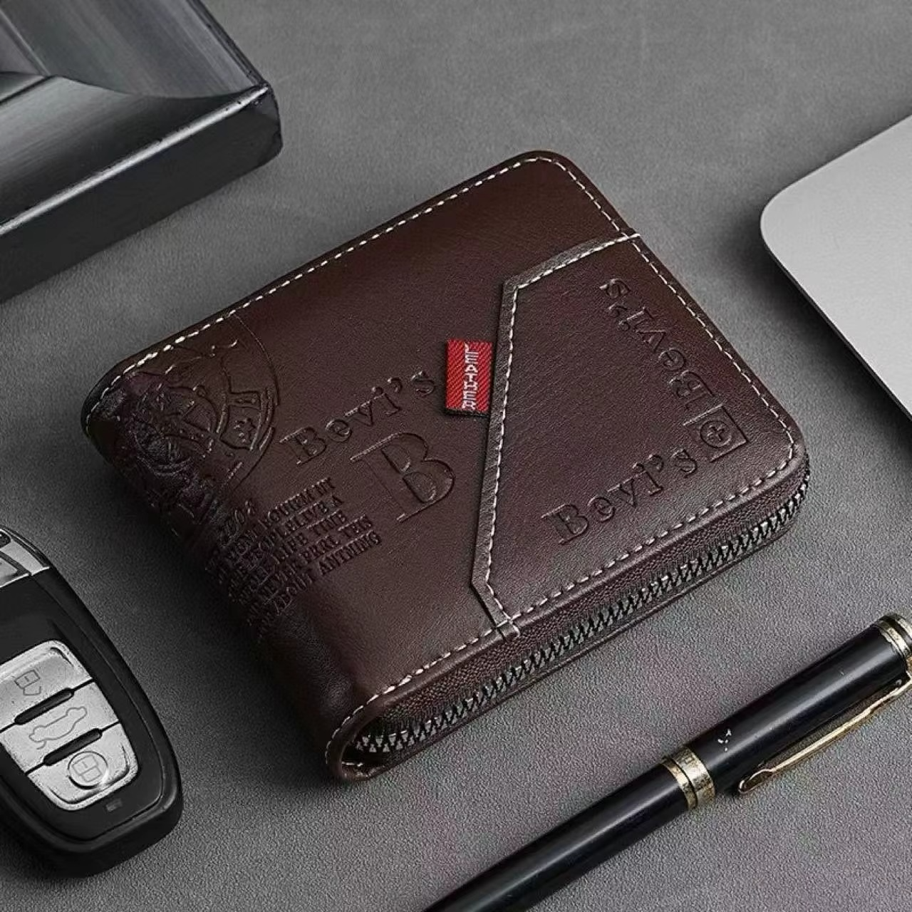 Herren Retro PU Leder Geldbörse Kurze Doppelfaltung Kartenhalter Münzfach Trendiges Design. Diese Brieftasche im kurzen, faltbaren Stil ist kompakt und dennoch geräumig genug, um Ihre täglichen Dinge aufzubewahren.