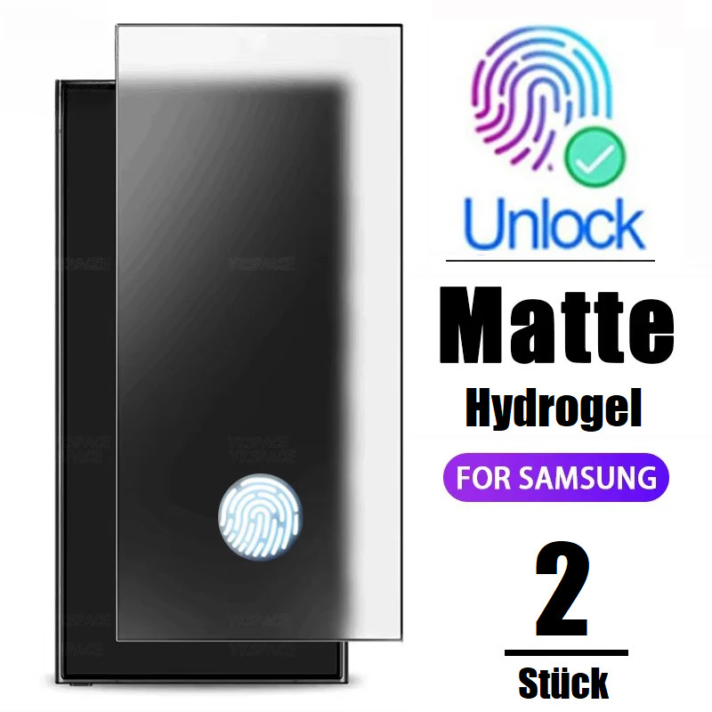 2x Matt Hydrogel Schutzfolie für Samsung Galaxy 🎉. 2x Matt Hydrogel Schutzfolie 📱. 3D Curved Abdeckung : Rundumschutz für alle Displaykanten 📱. Samsung Galaxy S21/S22/S23/S24/S25 Serien (inkl. Plus, Ultra & FE).