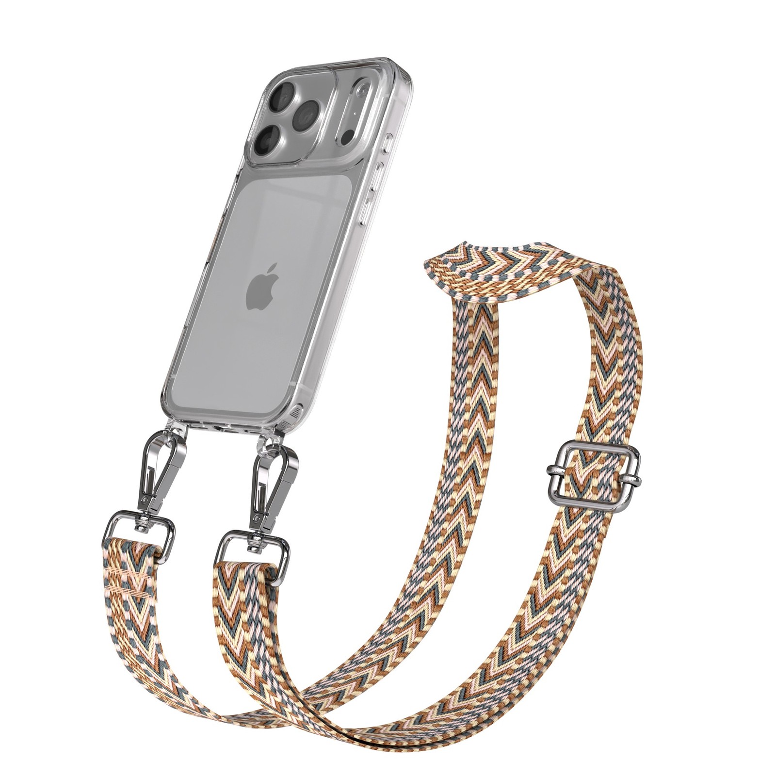 Handykette für Apple iPhone 17 Pro Hülle mit Boho Band Hellbraun / Braun -Silber