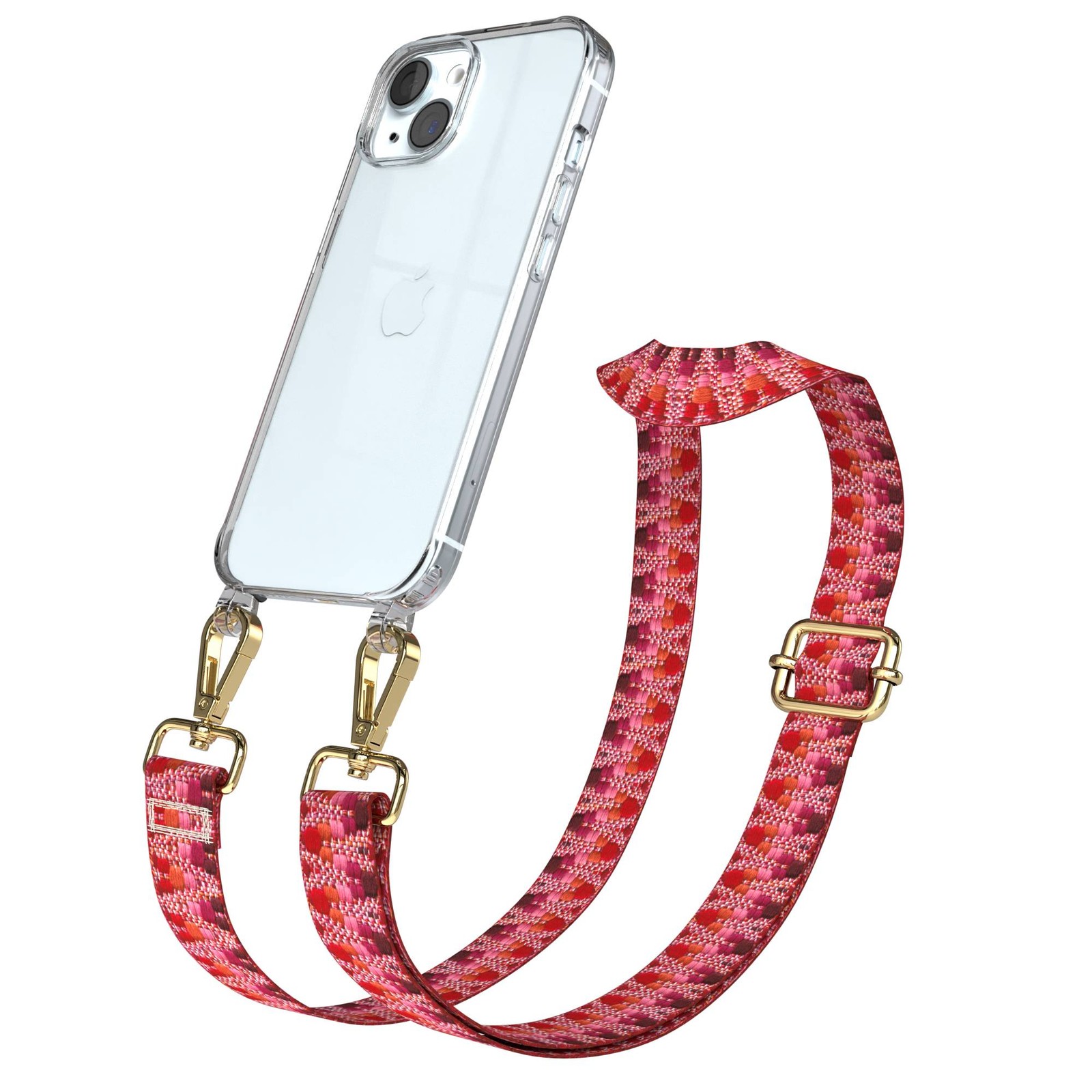 Hülle mit Band für Apple iPhone 15 Cover Case Kette Berre / Rosa Mix - Gold