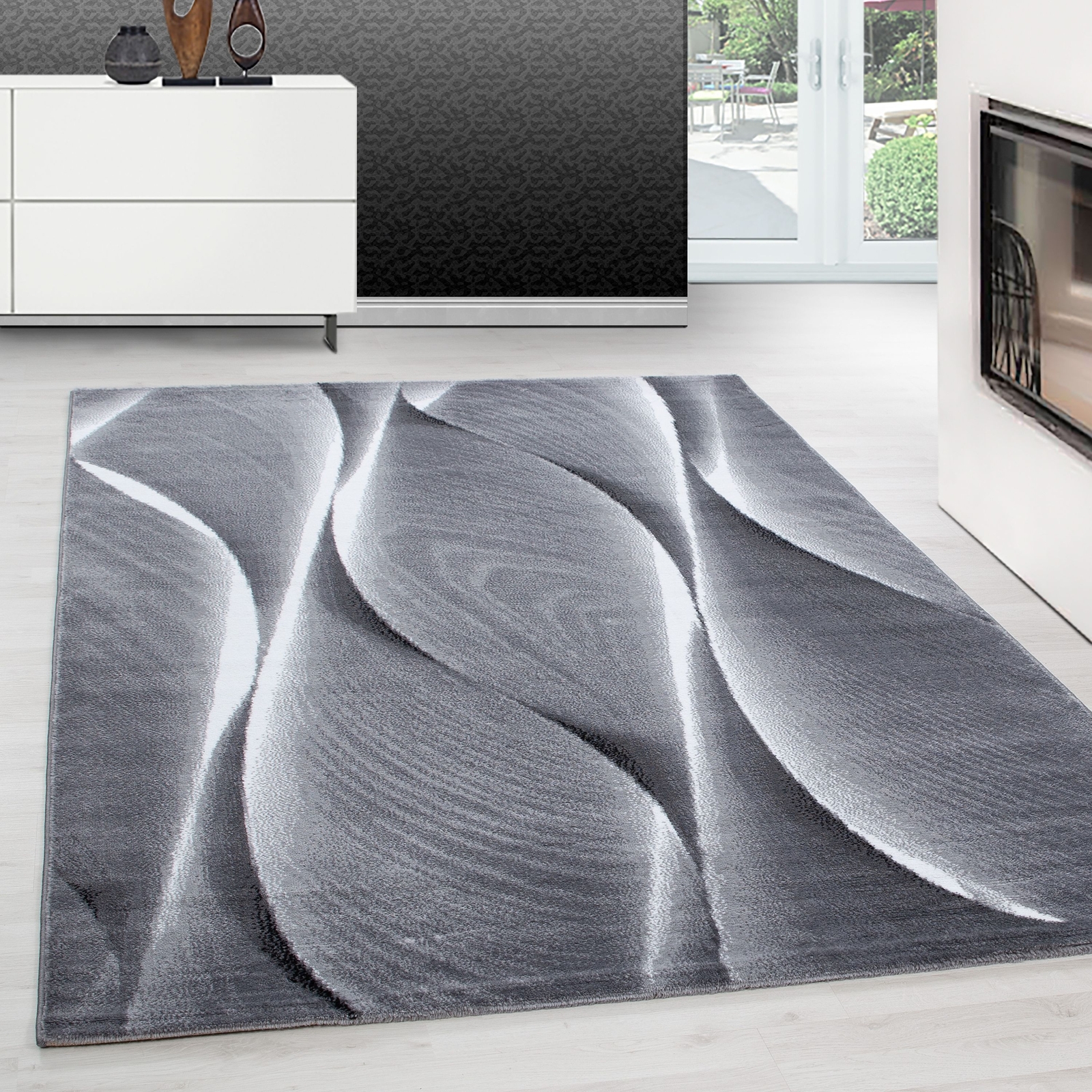 Modern Wohnzimmer Teppich Kurzflor Holz optik Wellen Design Grau, Pflegeleicht