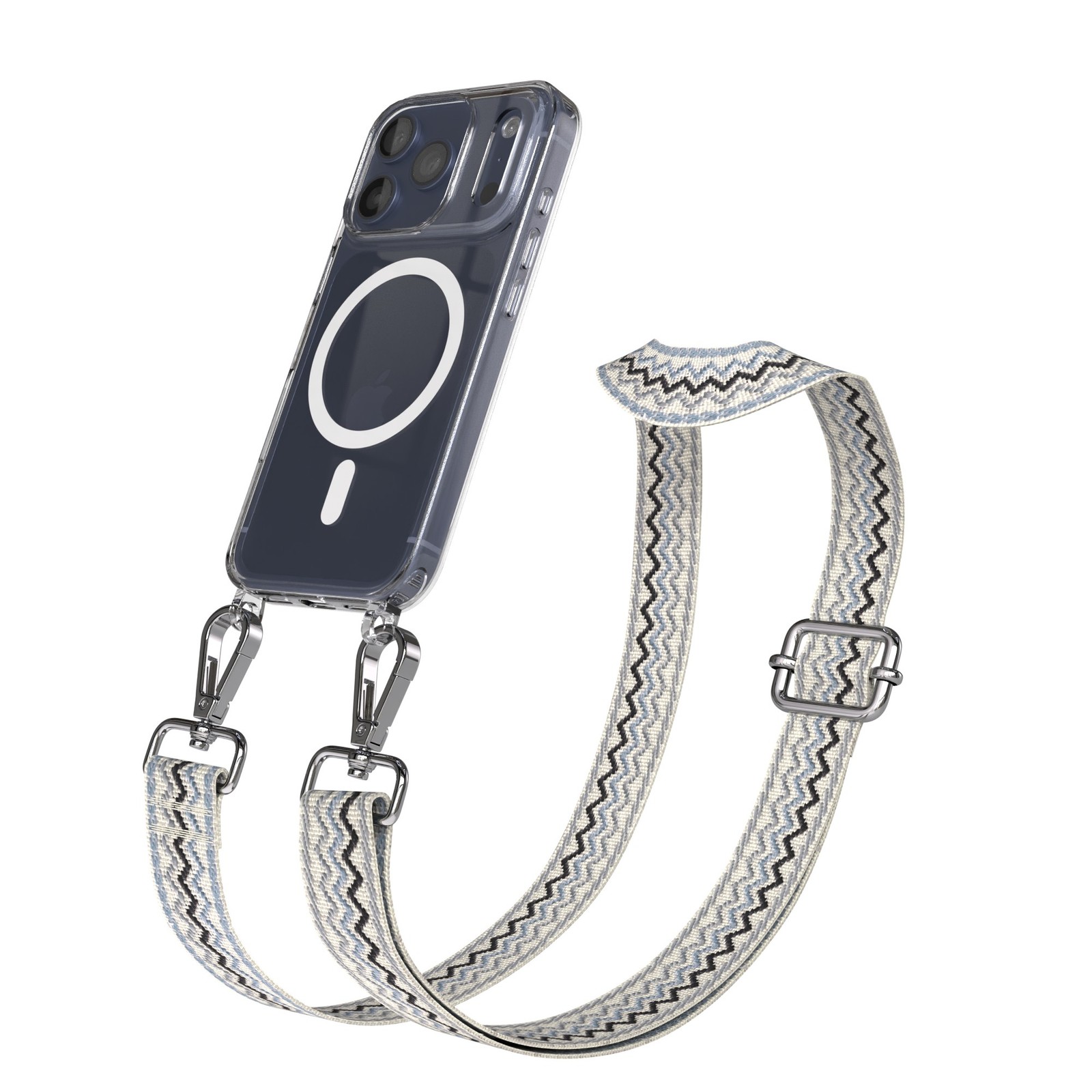 MagSafe Handyhülle mit Band für Apple iPhone 17 Pro Kette Blau Wellen - Silber