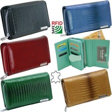 Jennifer Jones Damen Geldbörse RFID Echtleder Reißverschluss Groß Schwarz
