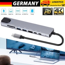 USB-C Hub 8-IN-1 Adapter 4K HDMI USB 3.0 LAN Ethernet Kartenleser oder 4-IN-1