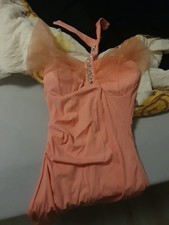 Material 40 % Viskose 2 % Elasthan 58 % Polyester. Farbe zart türkis / weiß. an den Schultern und auf dem Rücken dekorative Spitzeneinsätze.