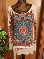 beige bunte Damen Bluse mit Blumendruck Gr. M von Cecil - 100% Baumwolle