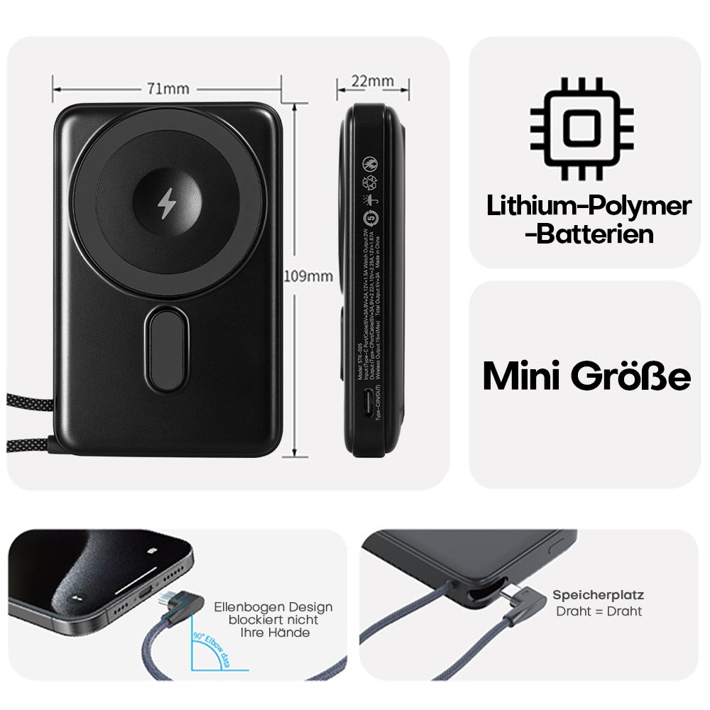 Über diesen Artikel: Informatives Smart Display: Behalten Sie den Ladevorgang Ihres Geräts im Blick. Von der Akkuladung bis zur vollständigen Ladezeit – der intuitive Smart Screen hält Sie stets auf dem Laufenden. Magnetisches Design: Diese Powerbank ist speziell für die iPhone-Serien 15/14/13/12 entwickelt und nutzt fortschrittliche Magnettechnologie, um Ihr Gerät sicher zu halten und sofortiges Laden bei Kontakt zu ermöglichen. Hinweis: Inoffizielle MagSafe-Hüllen und Magnetringe werden nicht unterstützt. .
