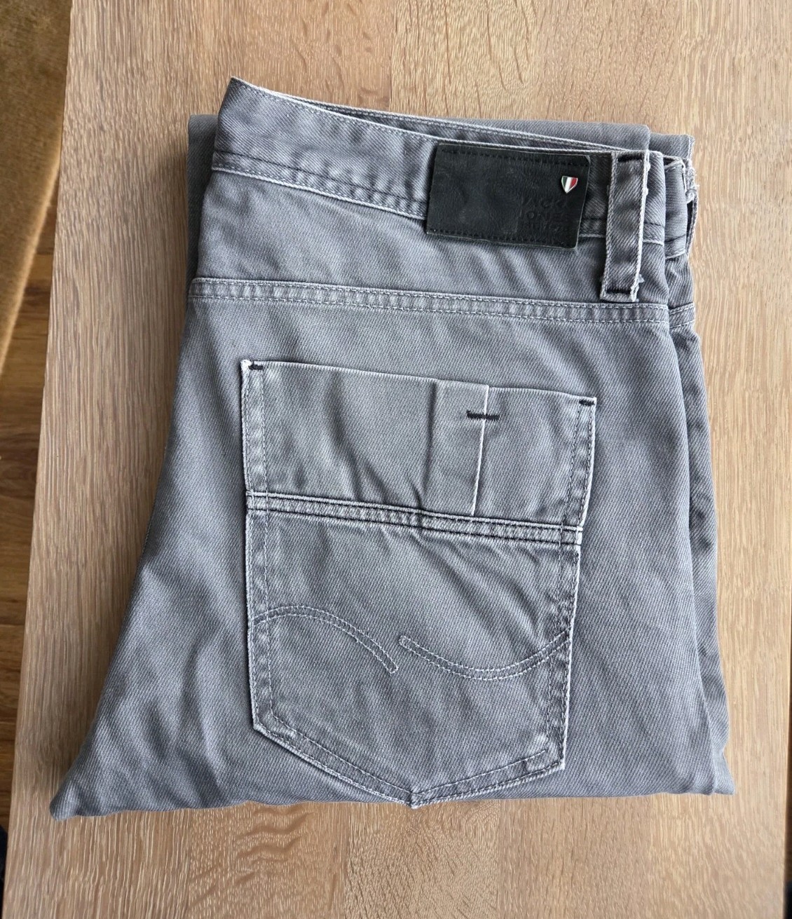 Die Jeans in zeitlosem Grau ist aus hochwertiger Baumwolle gefertigt. Größe: W34 L30. Männer Jeans Hose. Gerader, lässiger Schnitt und einem stabilen Knopfverschluss. Klassischen Five-Pocket-Style mit Reißverschluß als Accessoir.