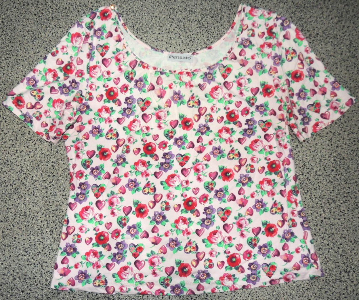 Damen T-Shirt Rosa/Rot gemustert Blumen Strass ca. Gr. M 40/42 Pensato