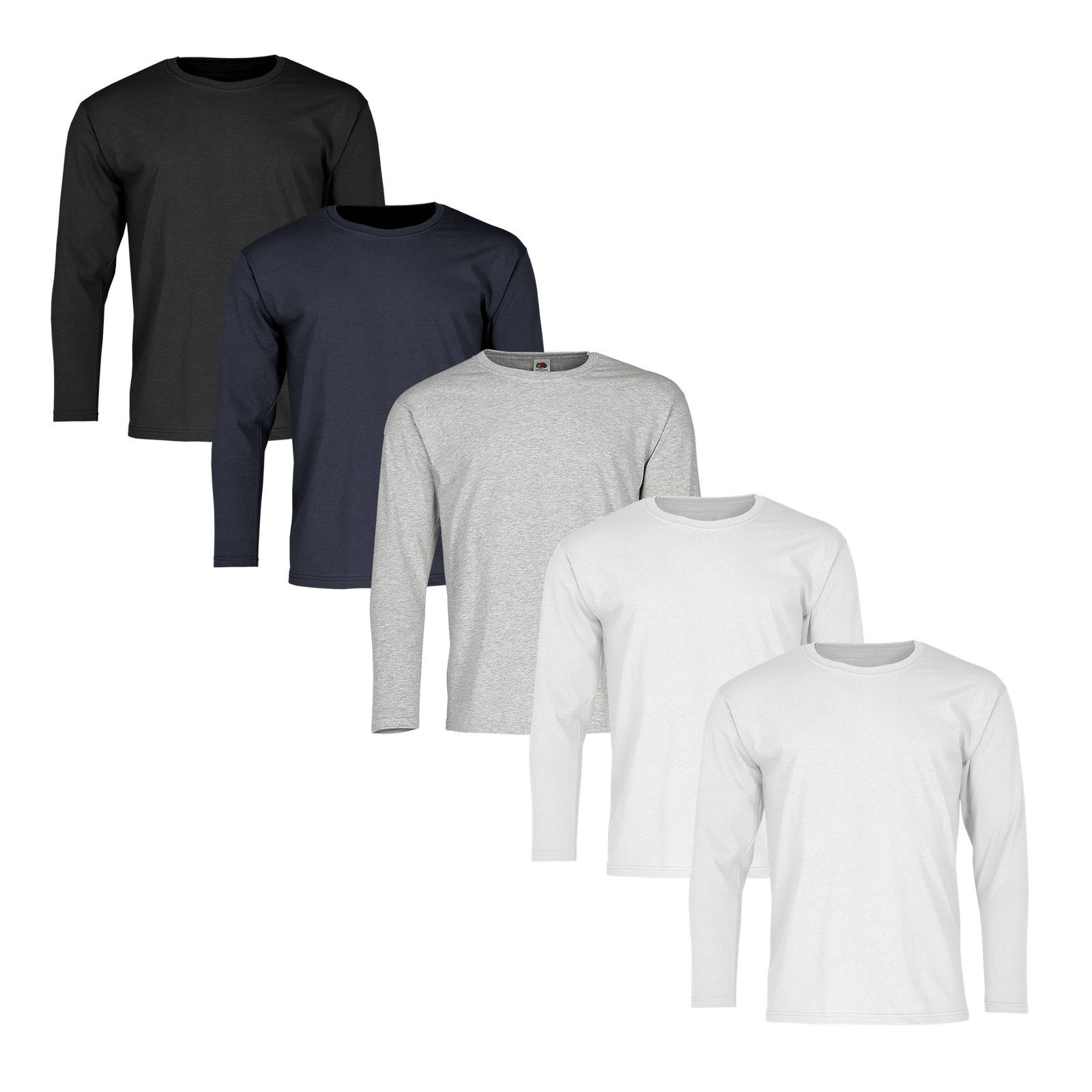 Fruit of the Loom 5er Pack Langarm Shirts Herren Long Sleeve | S–5XL | Baumwolle