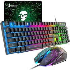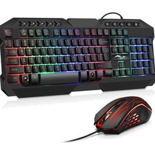 Gaming USB Tastatur Maus Set RGB Beleuchtet 2400DPI Mauspad Mechanische Tastatur