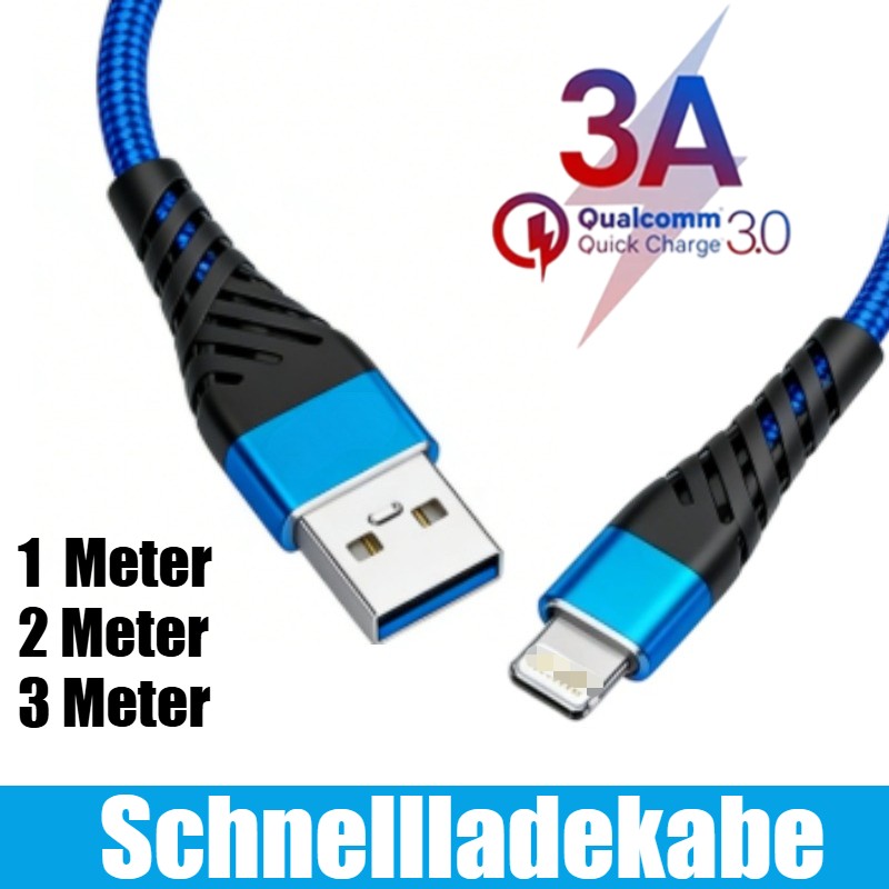 Ladekabel iPhone Datenkabel Nylon Schnell für 7 8 X 11 12 13 14 IOS 8-Pin 1-3m