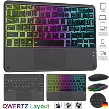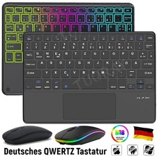 Beleuchtet & Touchpad Tastatur. Bluetooth-Maus und -Tastatur können gleichzeitig mit dem iPad verbunden werden. Tasten: 4 Tasten. Tastatur mit 7 Farben und Hintergrundbeleuchtung zum Tippen in dunkler Nacht, die helle Farbe und Helligkeit können umgeschaltet werden.