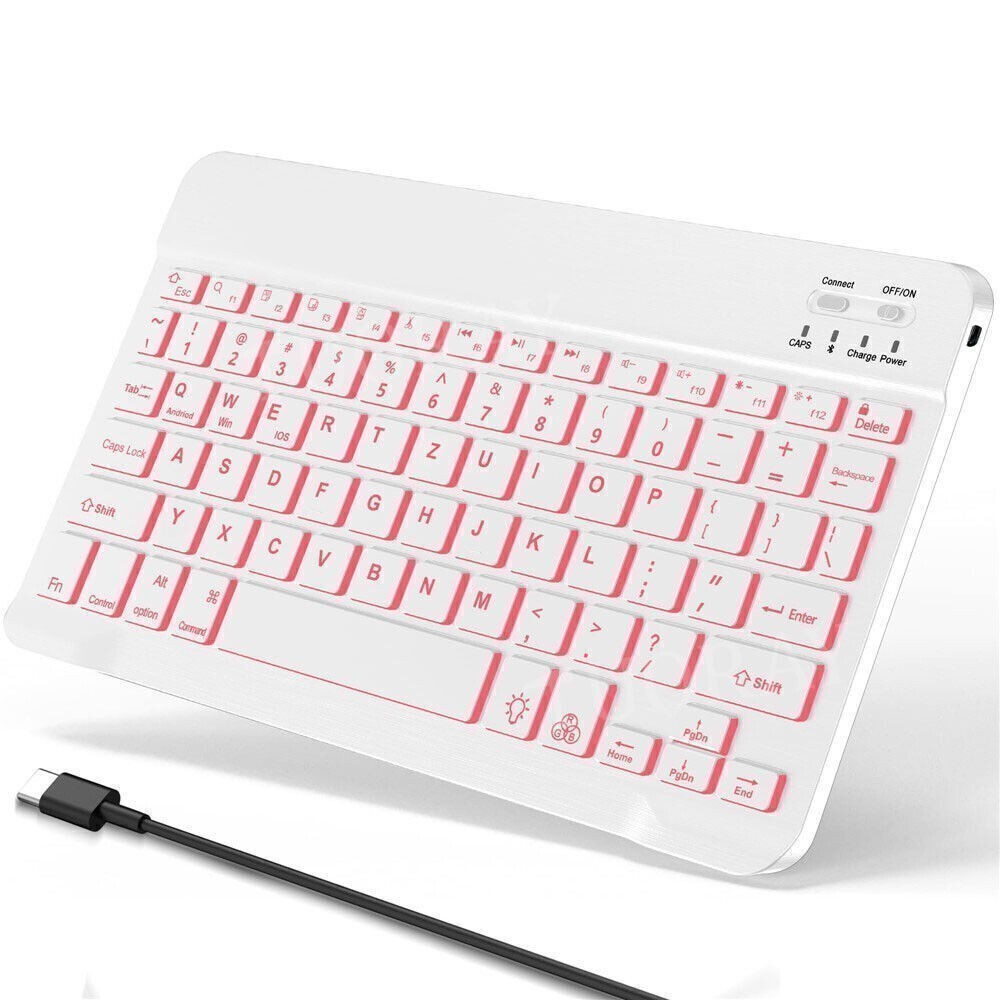 7-FARBIGE HINTERGRUNDBELEUCHTUNG: 7-farbige LED-Hintergrundbeleuchtung mit konstanter Beleuchtung und Atmungsmodus. Durch Drücken von RGB können Sie auf verschiedene Lichtfarben umschalten. Eingebaute wiederaufladbare 450-mAh-Lithiumbatterie, die etwa 40 Stunden arbeiten kann.